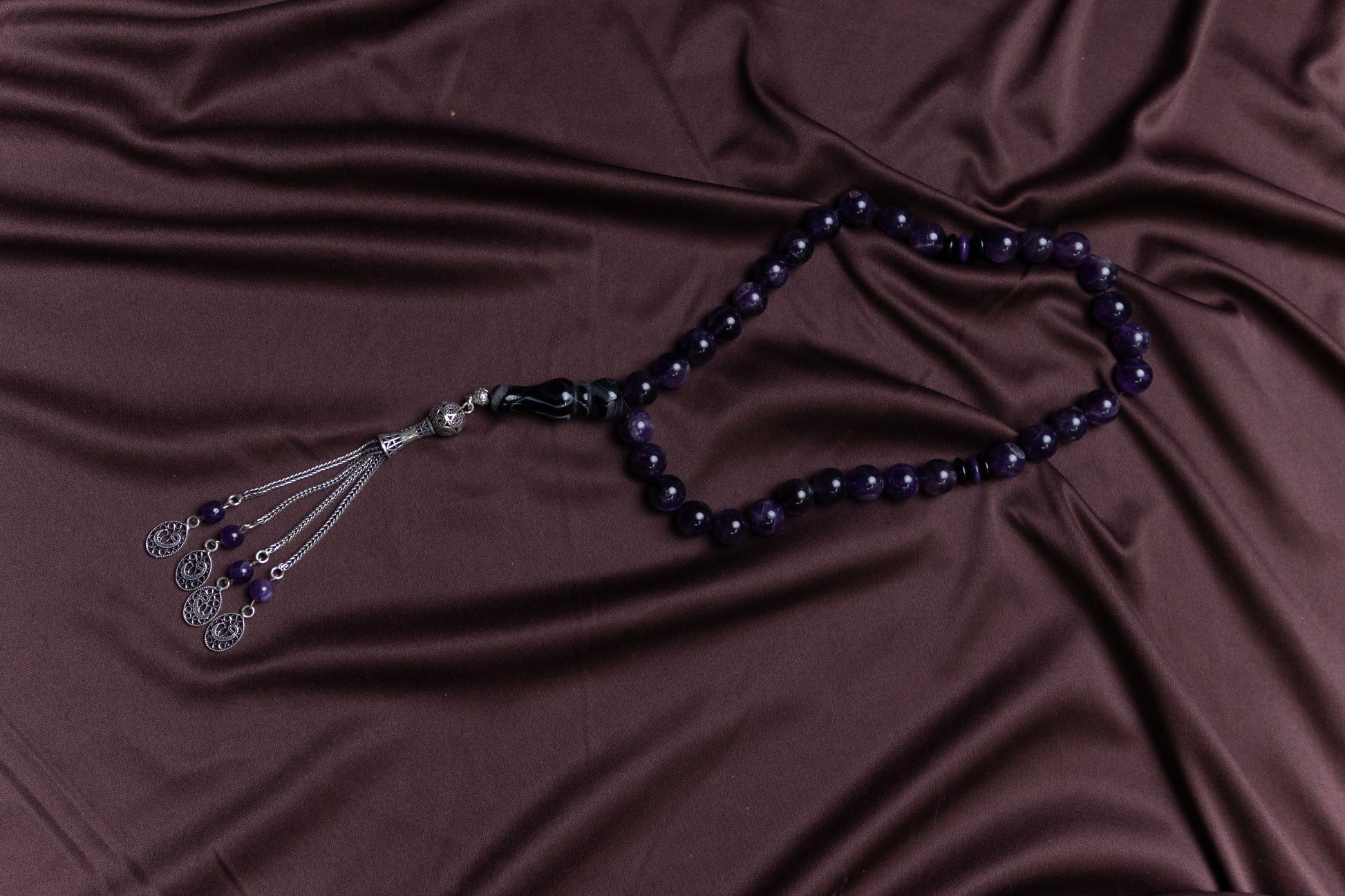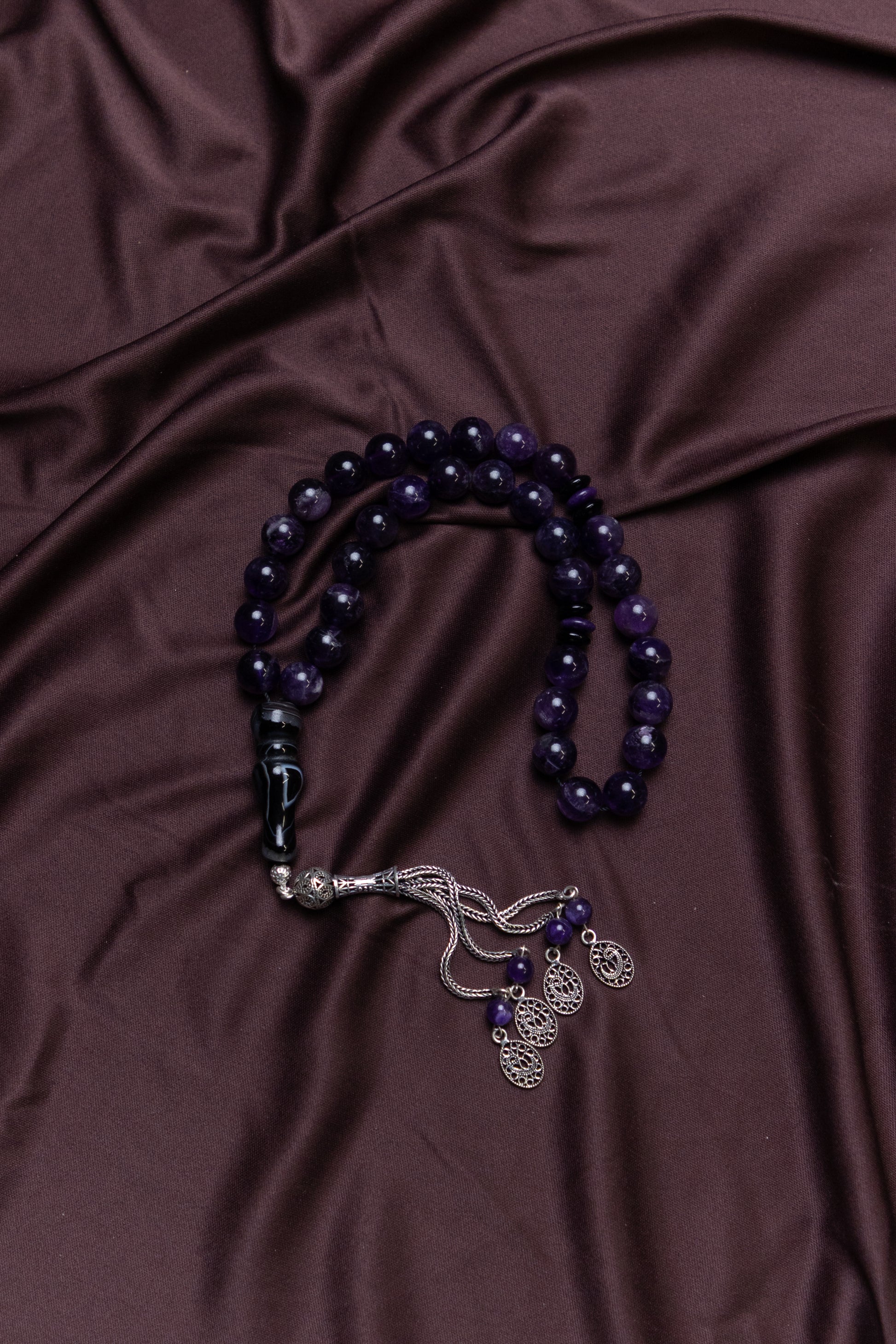 Amethyst gemstone Masbaha/Prayer beads with Silver tassel