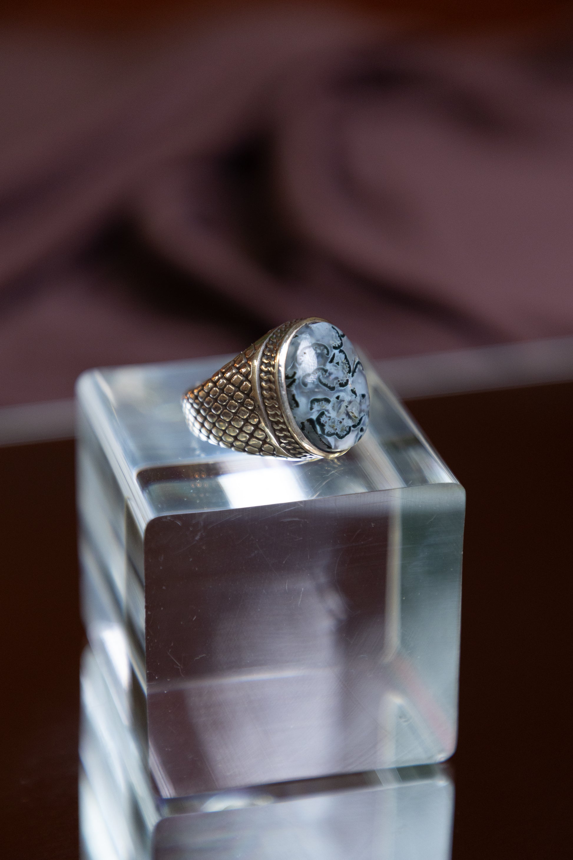 Banded Yemeni Agate gemstone inlaid in 925 Italian Sterling Silver