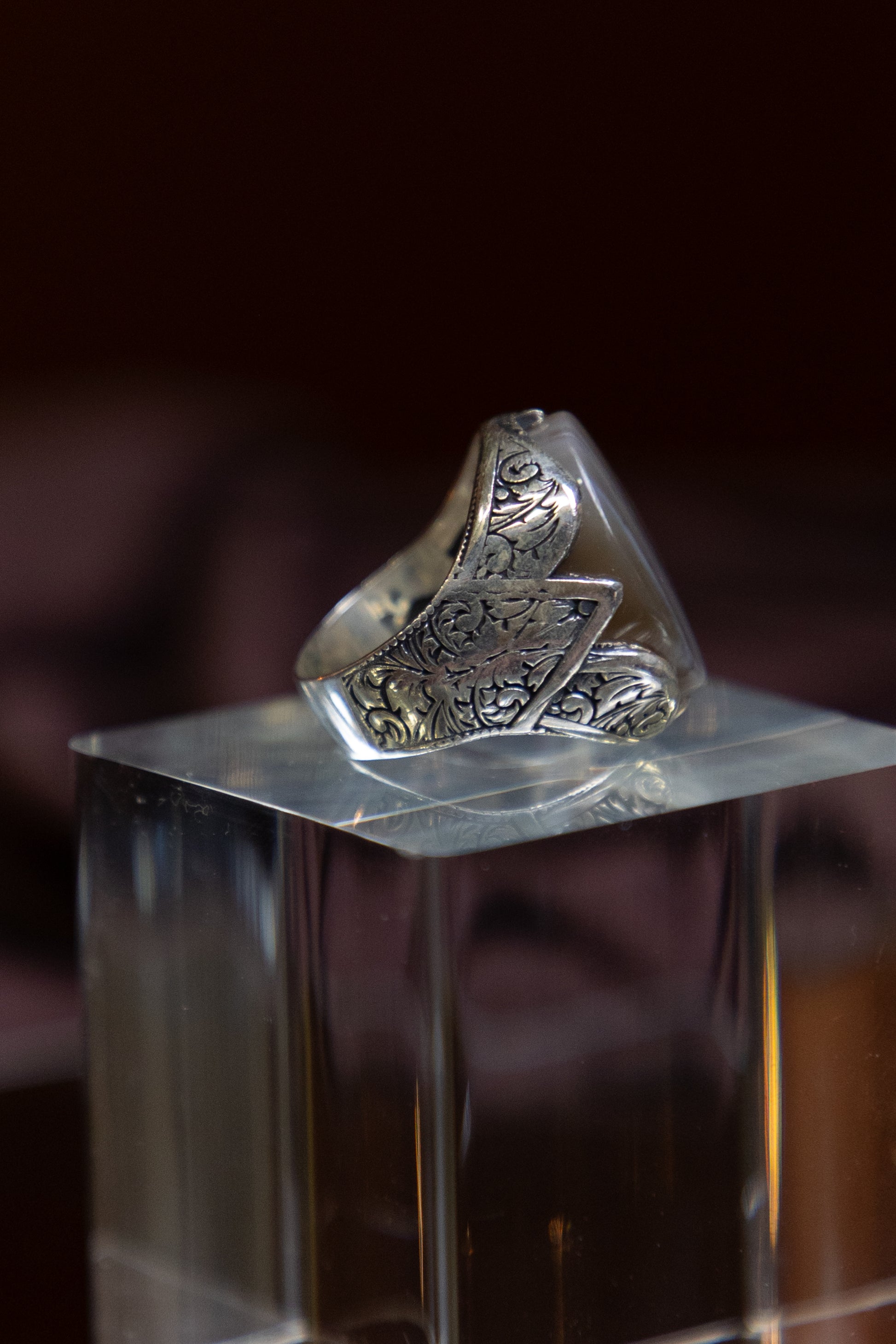 Brown/White Striped Yemeni Agate gemstone inlaid in 925 Italian Sterling Silver
