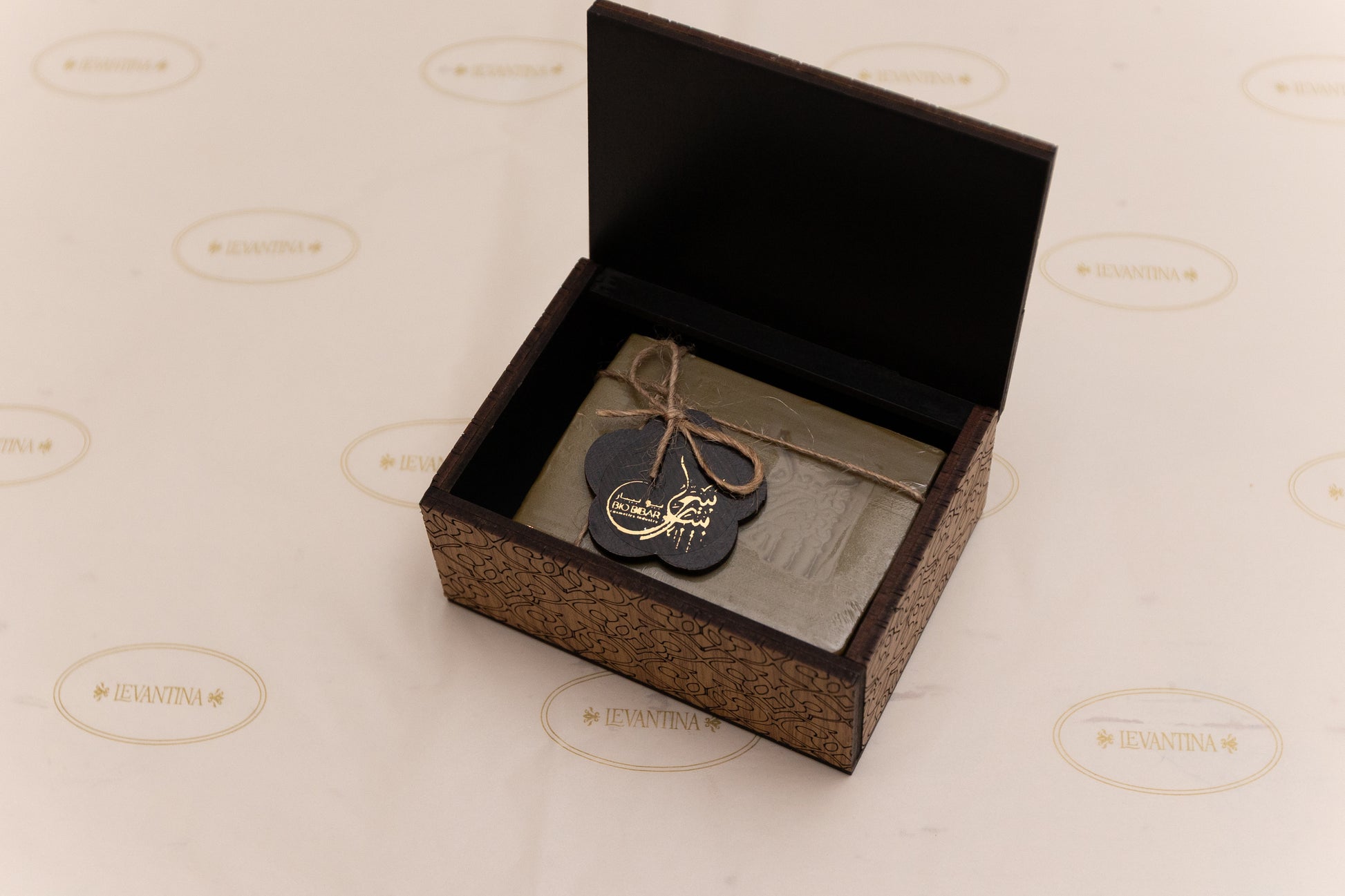 Premium traditional laurel soap in a deluxe engraved wooden gift box. Available in one piece or in a set of 6.