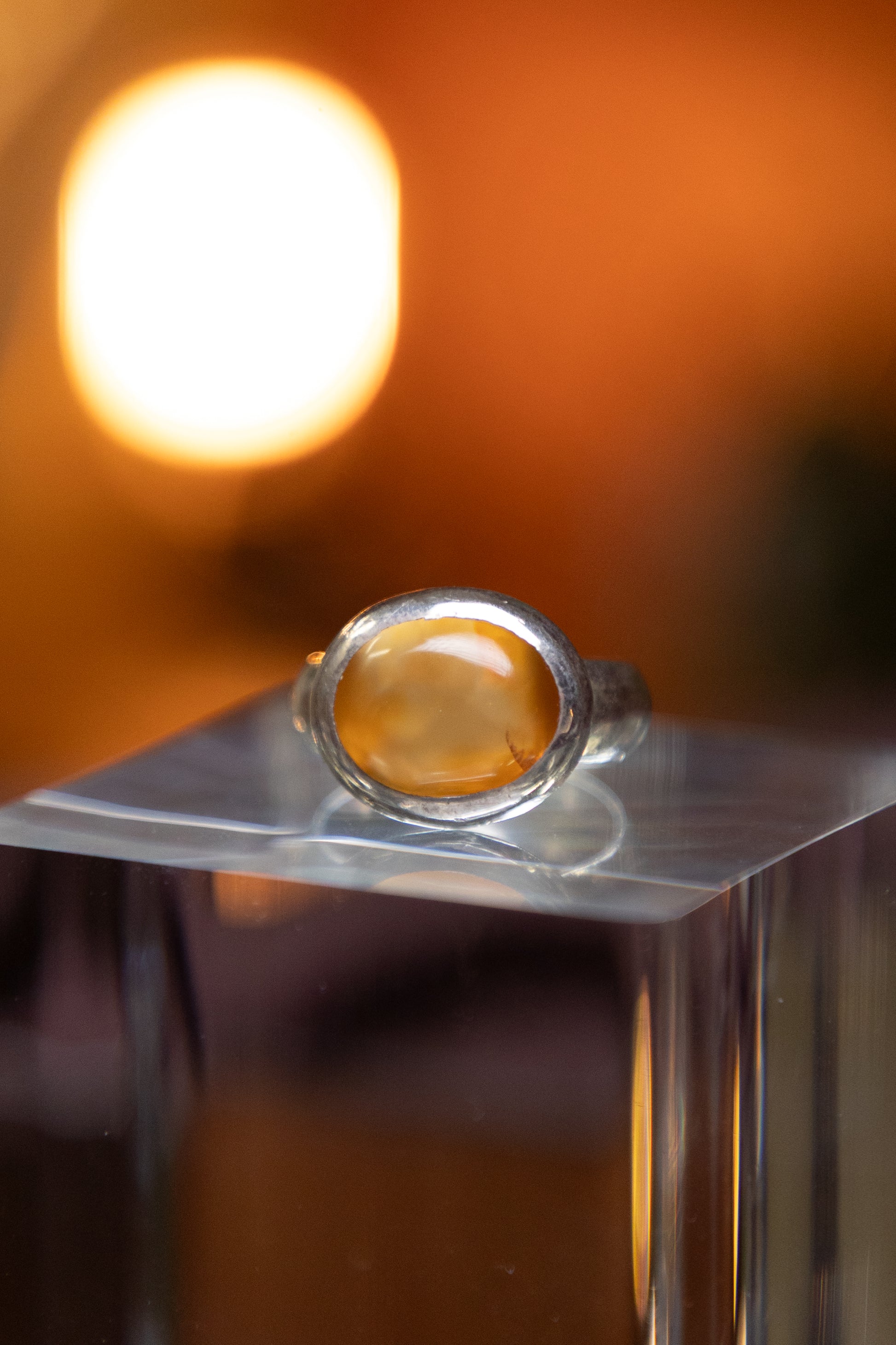 Orange Yemeni Agate gemstone inlaid in 925 Italian Sterling Silver