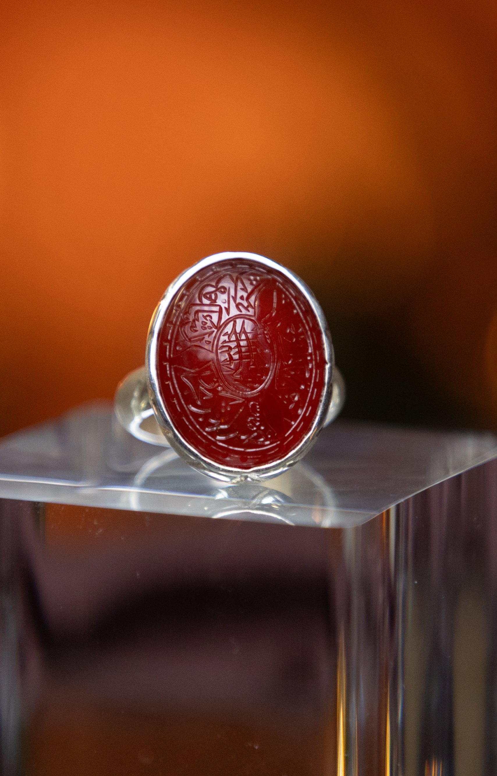 Red Yemeni Agate gemstone inlaid in 925 Italian Sterling Silver