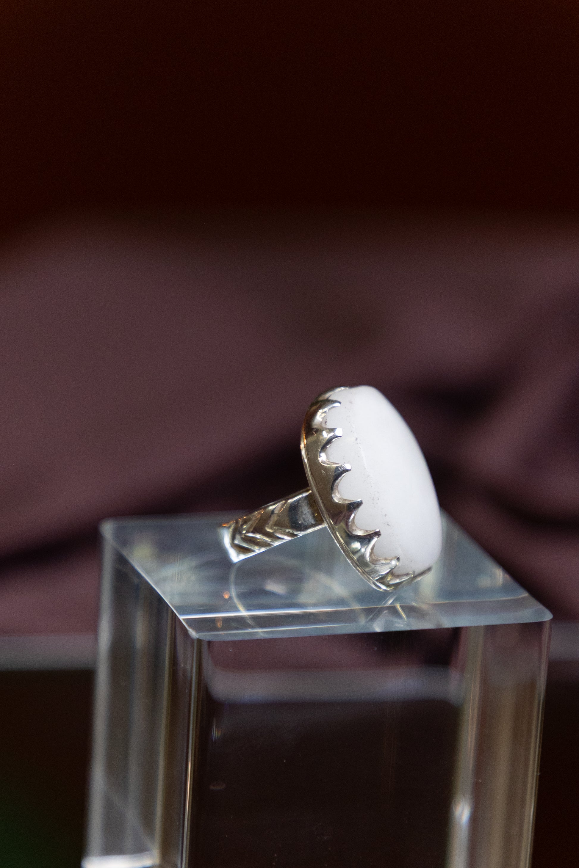 White Yemeni Agate inlaid in 925 Italian Sterling Silver
